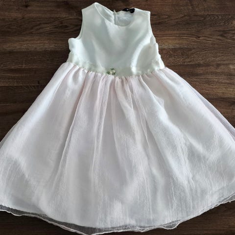 Bogi kimaltava vuorillinen mekko, koko 104 cm, siinä on vetoketjusuljenta takana.