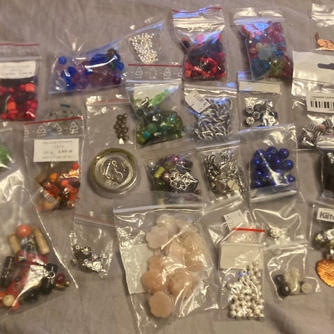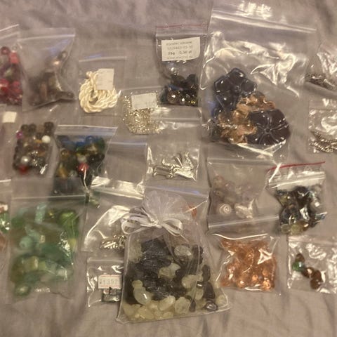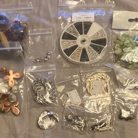 Korujen valmistussetti. Helmiä ja muita tarvikkeita. Hyvässä kunnossa.