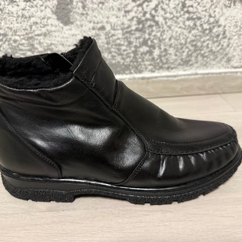 Mustat talvikengät, koko 41. Kengät on valmistettu nahkamateriaalista ja niissä on lämmin vuori, joka sopii kylmiin olosuhteisiin. Malli on varrellinen ja kengissä on sivuvetoketju helppoa pukeutumista varten. Made in Austria