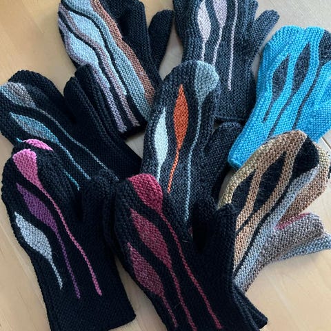 Uusi panta ja lapaset setti. Kirjava lanka Nakon lankaa, jossa villan joukossa raakasilkkiä. Musta lanka 7-veljestä. Normaali naisten koko