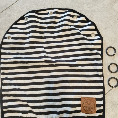 Myydään kaksi vaunuverhoa: Raidallinen/vaaleanharmaa BabyWallaby ja käsityöpuodista ostettu valko-harmaanlilaraitainen/valkoinen. Käytetty kunto. Hajusteeton, eläimetön ja savuton koti.