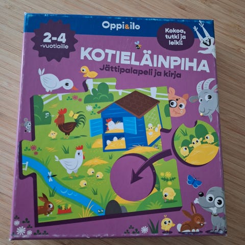 Oppi&ilo kotieläinpiha jättipalapeli ja kirja Koottu yhden kerran, joten aivan uudenveroisessa kunnossa
