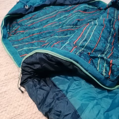 Myydään hyväkuntoinen vihreä vähän käytetty Marmot Wave II Jr. lasten makuupussi (150 cm).