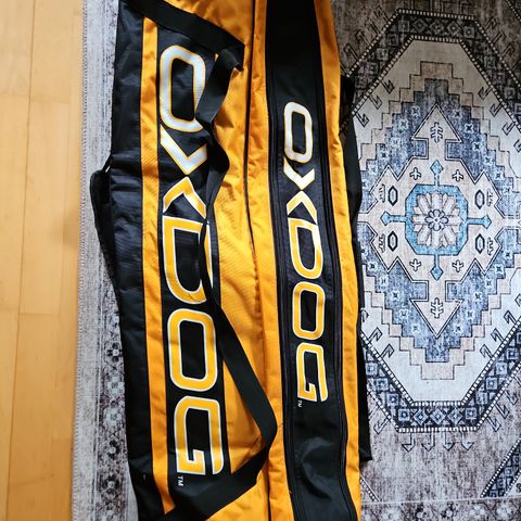 Oxdog varustelaukku mustana oranssein yksityiskohdin. Laukussa varusteille 2 taskua, sekä mailoille oma, lisäksi 2 pientä vetoketjutaskua. Erittäin vähän käytetty ja siisti.