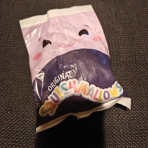 Happy meal mäkkärilelut Squishmallow pehmot avaamattomissa pakkauksissaan.