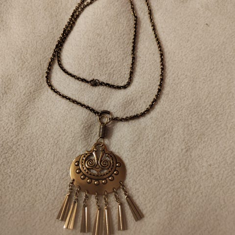Moitteettomassa kunnossa oleva riipus ilman ketjua. Halkaisija noin 28 mm.