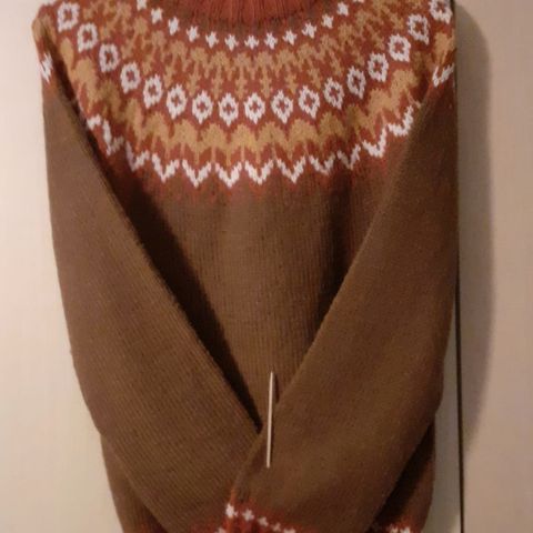Villapaita 200e. Koko L. Mitat rinnanympärys 102cm, kai-helma 46cm ja hihan sisäpituus 53cm. Lankana lettlopi.