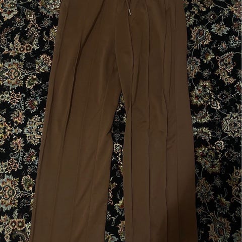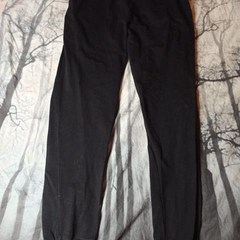 Rennot mustavalkokuviolliset housut. Lahkeissa sekä vyötäröllä tukevat korkeat resorit, joissa kuminauhat. Edessä taskut. Ovat jo vanhahkot, mutta ei näkyviä käytönjälkiä, mukavan viileä kangas.