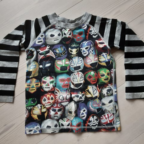 Cotton on Kids 5, ei kokomerkintää (vai olikohan se toi 5..), vastaa kokoa 116, vihreä army-kuosi (enempi nukkaa näissä)