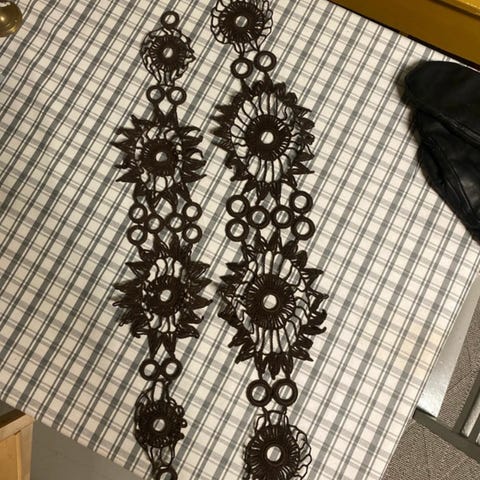 Kalastajalangasta käsityönä virkattu verhokappa