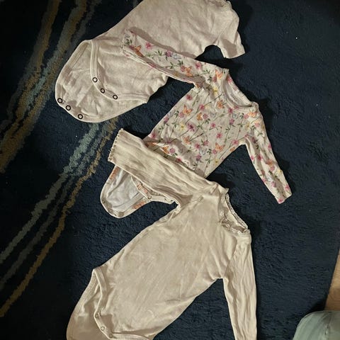 Name it ihana ribbibody, jossa pitsiä ja solmittavat nauhat edessä, kullanväriset nepit. Koko 68 cm.