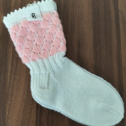 Paksut ja lämpimät, konepestävästä langasta (7-veljestä tai vastaava) käsin kudotut villasukat noin kokoa 30.