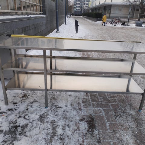 Myydään Lunakin moottorilla varustettu laadukas ja täysin toimiva, korkeussäädettävä rosterinen työpöytä keittiökäyttöön.
