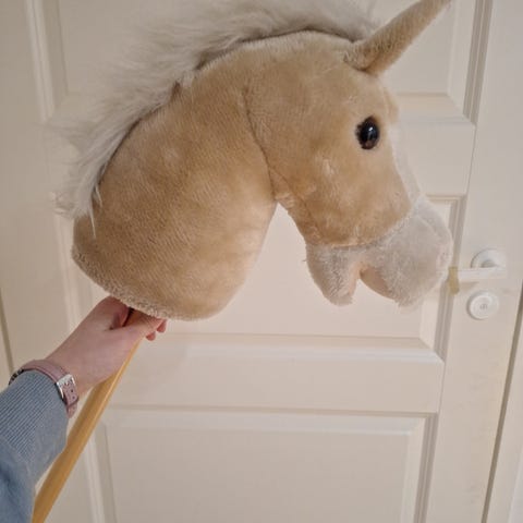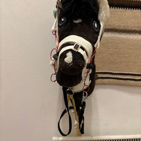 Hyväkuntoinen keppihevonen kuolaimettomilla suitsilla