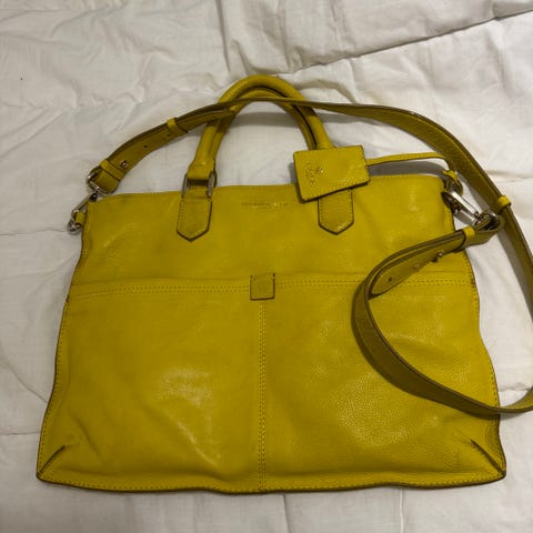 Tiger of Swedenin laatunahkalaukku ostettu arviolta 2010-luvun alkupuolella. Aitoa nahkaa. Tähän mahtuu 13" läppäri sisään. Koko noin 30x32cm. Säädettävä hihna.