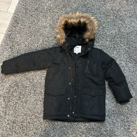 Ruskea erittäin siisti juhlakäyttöönkin sopiva suklaanruskea toppatakki. Kokomerkintä 110 cm. Irrotettava huppu ja hupussa irrotettava karvareunus. Uudenveroinen, tainnut jäädä kokonaan käyttämättä.