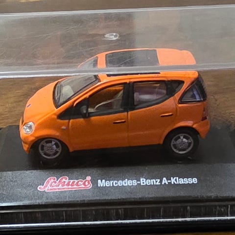Mercedes-Benz A-Class pienoismalli sininen. Malli esittää Mercedes-Benz A-Class -auton pienoiskoossa sinisenä. Sisältää yksityiskohtaisen ulkokuoren ja on esillä läpinäkyvässä suojakotelossa.