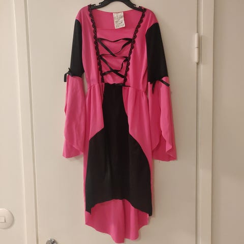 Myydään hieno ja tosi hyväkuntoinen naamiaisasu / noita-asu. Koko noin 134-140 cm. Kerran ollut päällä. Mekossa läpikuultava, irrotettava seittiviitta.