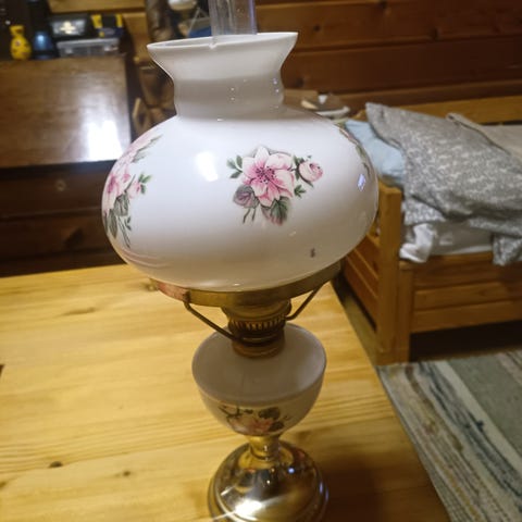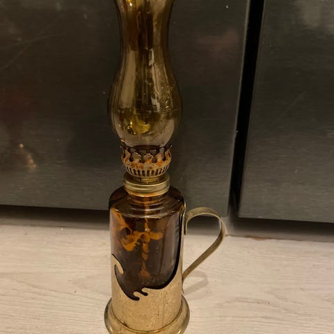 Myydään kuvassa näkyvä vanha punaisen/messingin sävyinen öljylamppu. Hinta:60€