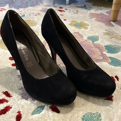 Punaiset Tamariksen avokkaat. Kuvissä väri näyttää oranssin punaiselta mutta todellisuudessa väri on enemmänkin tummanpunainen. Käytetty vain muutamia kertoja.