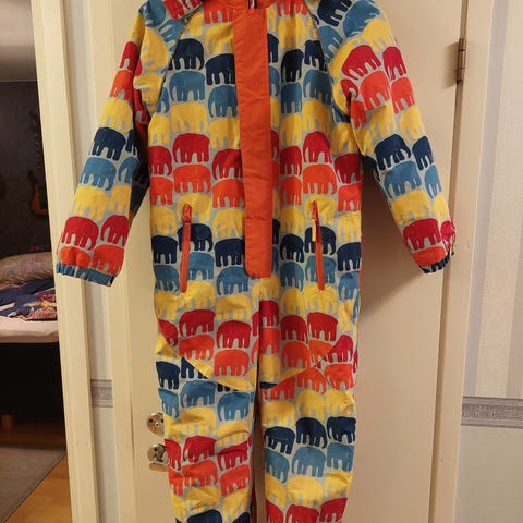 Siisti musta zigzagin toppapuku. Koko 140-145cm