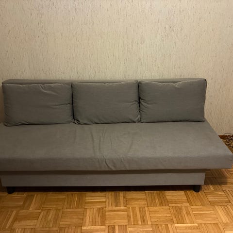 Nouto Hatanpäältä. Sohva on tällä hetkellä purettuna osiin, joten helppo kuljettaa (kts. Ikean sivuilta pakkauksen mitat).