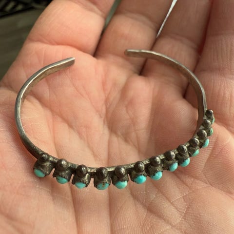 Egyptiläinen vintage beduiini-hopearannekoru. Leveys 1,6 cm, halkaisija 6 cm.