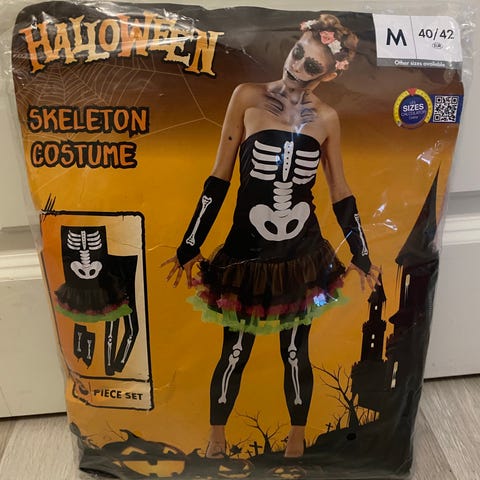 Luuranko halloween asu / puku,koko M. Huppu, vetoketju edessä