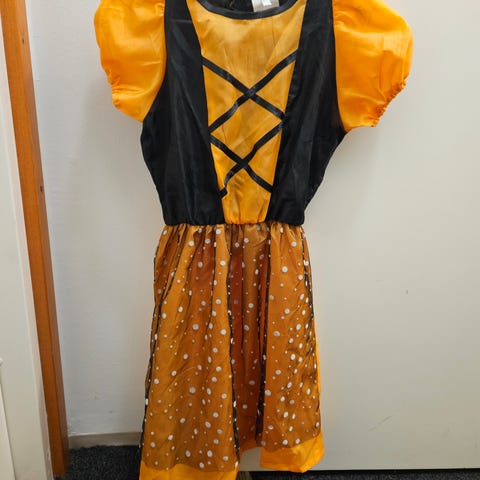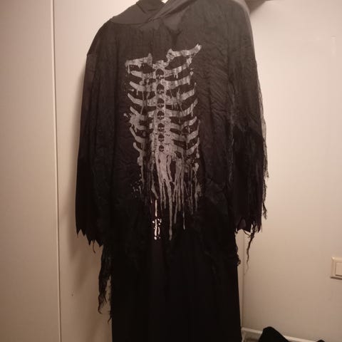 Halloween asu kokoa 134/140. Asuun kuuluu namaari. Muuten ehjä, mutta muutama langanveto ja reikä haarojen kohdalla (kuvissa).