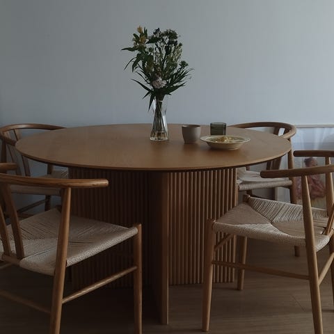 Ruokapöytä Jyskin laadukas VESTERBORG halkaisija Ø 130 luonnonvärinen tammi ovh pelkkä ruokapöytä maksanut 549euroa