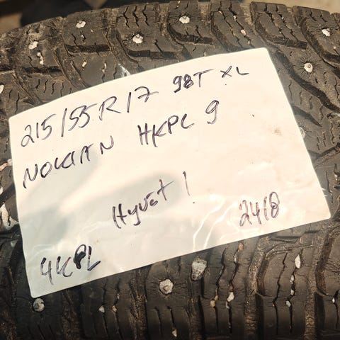 Myydään asiallisessa kunnossa olevat Nankang NK SNOW SW-7 nastarenkaat. Kooltaan 215/55R17 98T XL. Pelkät renkaat, ei vanteita. Äkkiseltään katsottuna yhtään nastaa ei puuttunut, eikä ollut katkenneita. Pintaa parissa 8mm ja parissa reilu 7mm.