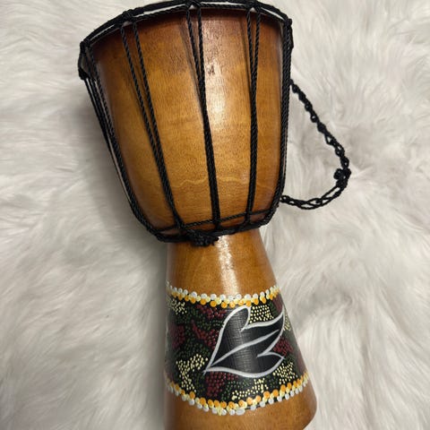 Käsintehty puinen djembe-rumpu, jossa on ruskea runko ja luonnonvärinen rumpukalvo. Rummun korkeus on 40 cm. Kalvon jalkaisia 16cm. Sopii eri musiikkityyleihin ja rytmien harjoitteluun.