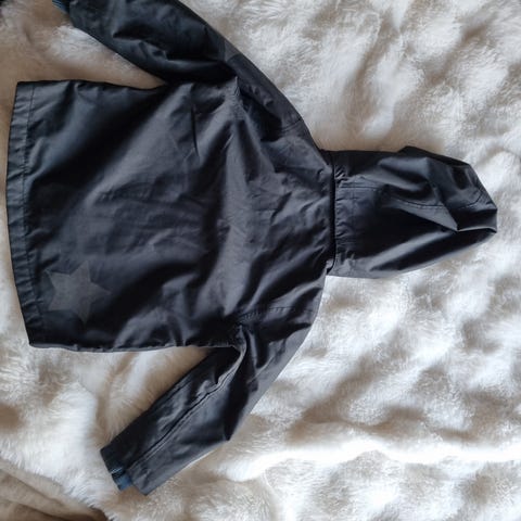Hyvä vedenpitävä takki syksyyn ja kevääseen. Vastaa hyvin kokoaan 98cm. Joitakin pieniä käytönjälkiä, mutta ei mitään isompaa. Siisti takki.