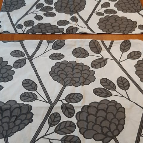 HT-Collection höyhentyynyt koko 60cm x 62cm harmaat päälliset ja Marimekon vaaleat, raidalliset vaihtopäälliset. 4 kpl yhteensä 100:-€.