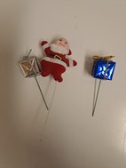 Koristeita "tikun" kanssa 3 kpl, esim joulukukkien juurelle