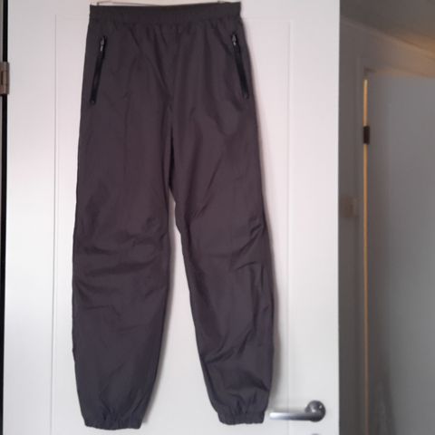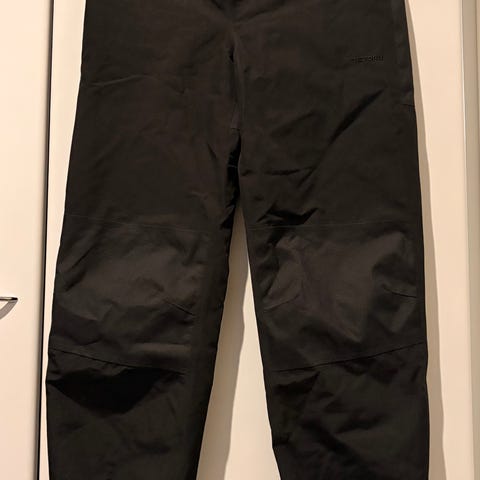 Veden- ja tuulenpitävät housut, joissa on vahvistukset polvissa ja takana.