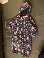 Annetaan Reiman toppahaalari kokoa 86. Pehmentymää polvissa ja pepussa, hihansuut kuluneet. Jalkalenksut puuttuu, yksi lenksujen nappi irronnut.