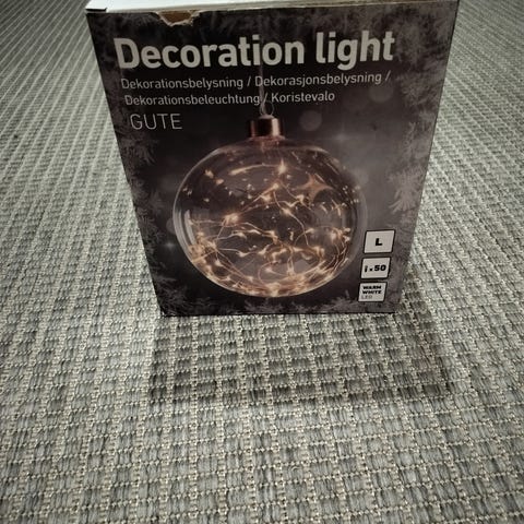 Kuvan mukaiset säihkyvät pallot. Kokonaispituus tupsu mukaan lukien n. 22 cm. Pallon läpimitta n. 8 cm. Yhteensä 3 palloa.