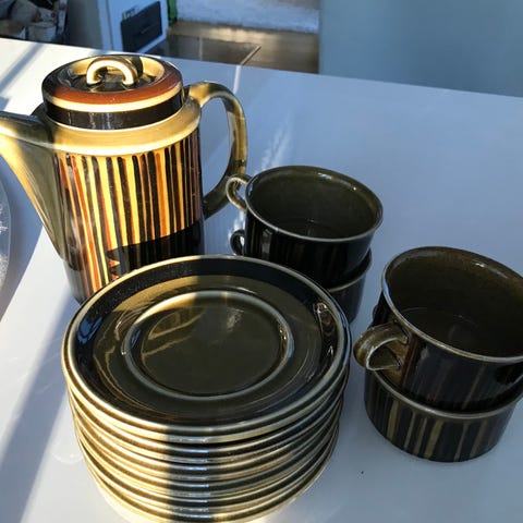 Tee kupit myyty,kahvikupit myymättä tasseineen 80e, (6 kpl kutakin)
