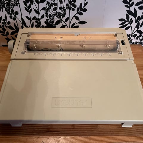Brother AX 110 sähkökirjoituskone. Ostettu 1990 luvulla, vähän käytetty, testattu, värinauha vanha mutta teksti näkyy. Tarkempaa tietoa ei kunnosta. Säilytetty lämpimässä. Sijainti Vääksyn keskusta, omien menojen mukana Lahti/Holma/Prisma tai Kouvola/Veturi, Vantaa Hakunila. Käteismaksu.