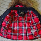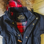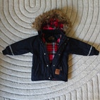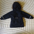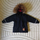 Ihanin Mini Rodinin toppatakki. Lämmin ja siisti. Suurin moite kauluksen vahvikkeen(?) kulumat, siitä kuva. Ollut meillä se parempi talvitakki.