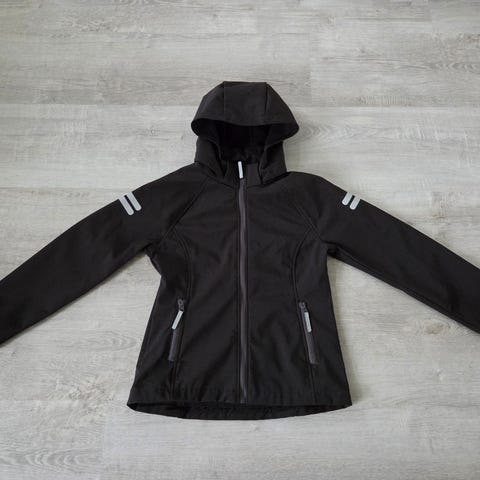 Tyttöjen softshell takki, joka on kokoa 146. Takki on ehjä. Takissa oleva helma kangas vähän nypyttynyt käytössä, mutta muuten takki on hyväkuntoinen.
