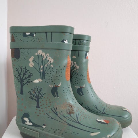 Annetaan paljon käytetyt kumisaappaat koossa 29. Pinttynyttä likaa ulkopuolella.