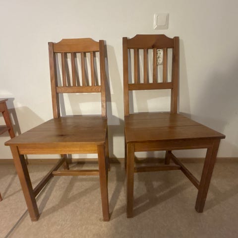 Annetaan tuolit korjattavaksi, muuten hyvät istua ja toimivat, mutta nahka kulunut taitava osaisi pistää esim kankaat päälle, laiskana heittäisin vaikka taljan jotta olemus siistimpi :) yöpöydät hyvässä kunnossa. Molempia on siiis 2kpl