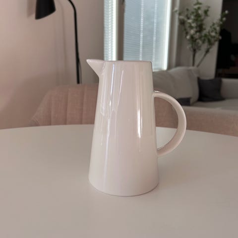Uudenveroinen Arabia KoKo valkoinen kermakko. Korkeus 10 cm.
