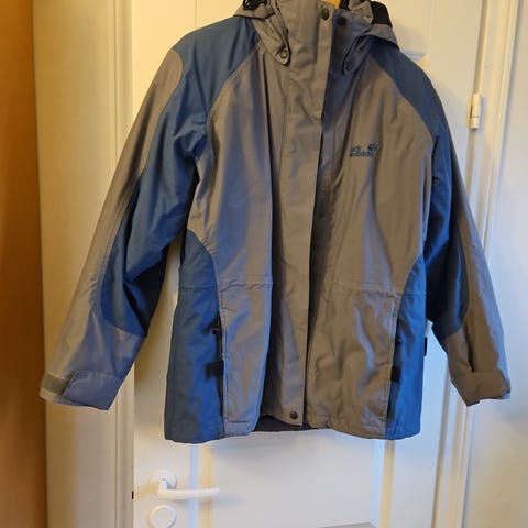 Kiva pieneksi jäänyt kuoritakki, jolla vielä vuosia jäljellä. Mitat kainalosta kainaloon 55 cm, olka-helmaa 64 cm. Alla ollut fleecetakki on joutanut kiertoon.
