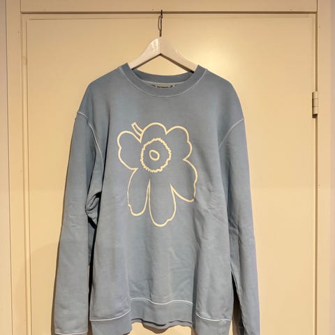 Marimekko lila-kirjava värinen Leiot Akvarelli Unikko collegepaita, koko XL, kai-kai 64cm, hiha 62cm, pituus 67cm, tukevaa puuvilla college kangasta, ei käytetty, ei käyttöönottopesty, virheetön, ovh. 200€