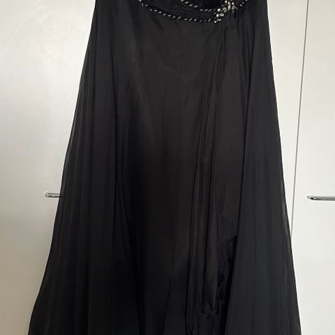 Meslewistä ostettu olkaimeton juhlamekko kauniilla koristeluilla. Koristeissa lasimaisia helmiä. Koko 38. Käytetty yksissä juhlissa.