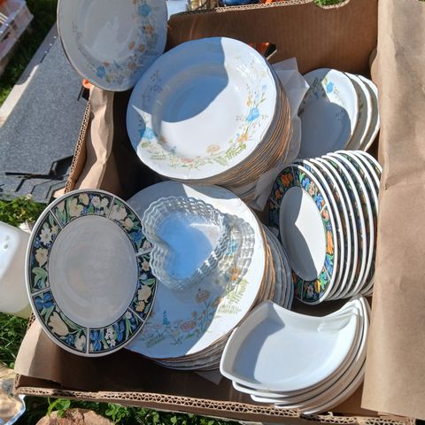 Tee/ kahviastiasto, kaadin, kermakko, 4 pientä kuppia, 6 alulautasta. Nouto Rauma