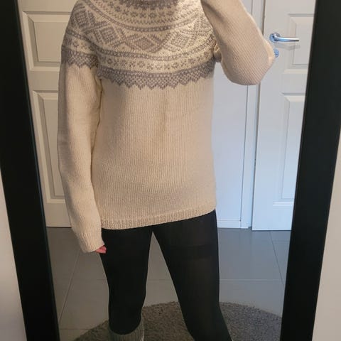 Käsinkudottu vaaleanruskea villaneule peura / kauris S-M